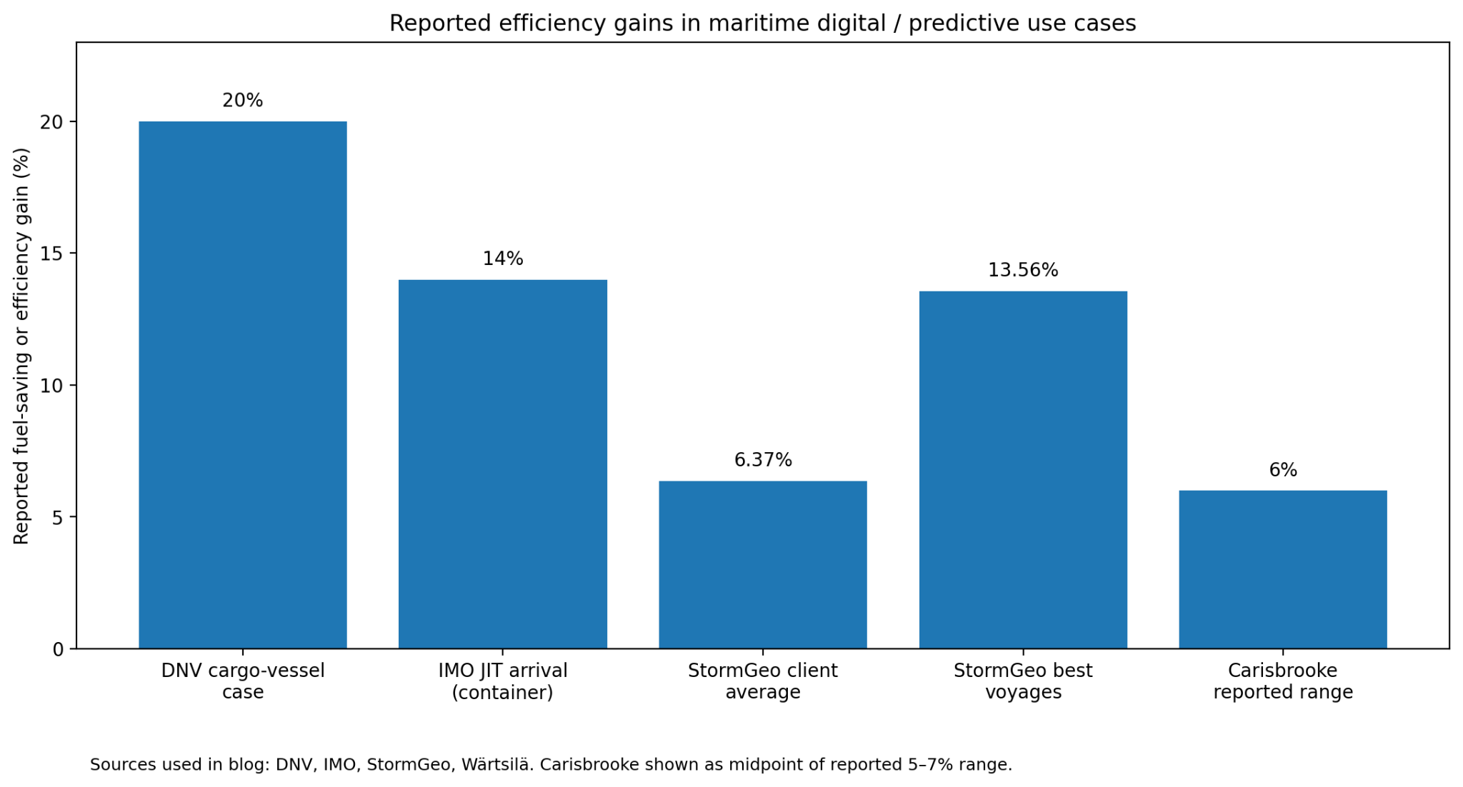 Wärtsilä said Carisbrooke Shipping achieved fuel savings of 5 to 7% across 31 vessels after adopting its Fleet Optimisation Solution. This proves that predictive shipping solutions can deliver repeatable gains in daily operations.
